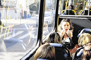 -Após o lanche, Tatiana espera pelo ônibus que a deixa no escritório, no bairro Praia de Belas. Paga R$ 2,95 pela passagem e leva 14 minutos para percorrer o trajeto – de carro, no mesmo tempo a jornalista larga os filhos na escola e chega ao serviço.